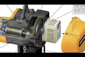 Harrington’s SMRQ Series dual speed (VFD Control) motorized trolley adds powered mobility to our SEQ Series single-phase dual speed (VFD Control) electric chain hoists for applications where long travel distance is needed.